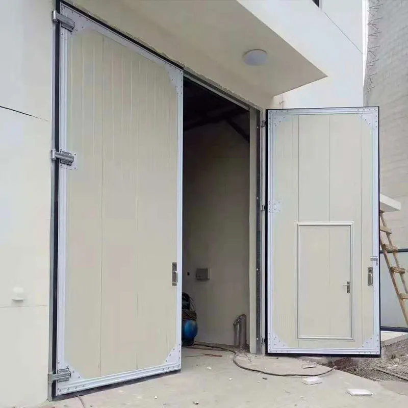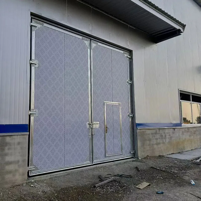 Промышленные распашные ворота состоят из дверной рамы, полотна, верхних и нижних петель, электрических защелок, приводов и уплотнителей. Эти ворота подходят для распашных дверей, открывающихся наружу, на промышленных предприятиях, складах со стальными каркасами, в трансформаторных помещениях и других вспомогательных зданиях с интенсивным движением транспорта и пешеходов. Они обладают отличной теплоизоляцией, высокой ветроустойчивостью, минимальными механическими повреждениями и долговечностью. Они также устойчивы к коррозии, долговечны, легко открываются и закрываются, безопасны, надежны и просты в эксплуатации. Они обеспечивают гибкое и удобное открывание, низкий уровень шума, отличную защиту от краж и ветроустойчивость. Они также подходят для установки небольших дверей и окон, полностью отвечая требованиям пользователя к открыванию и закрыванию.