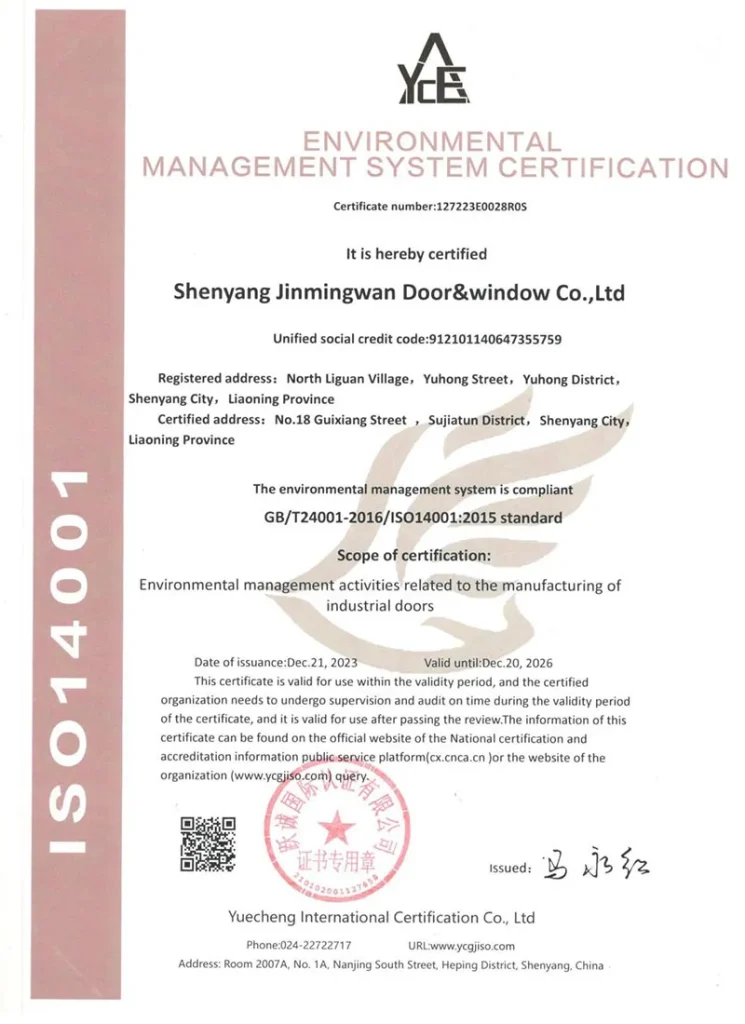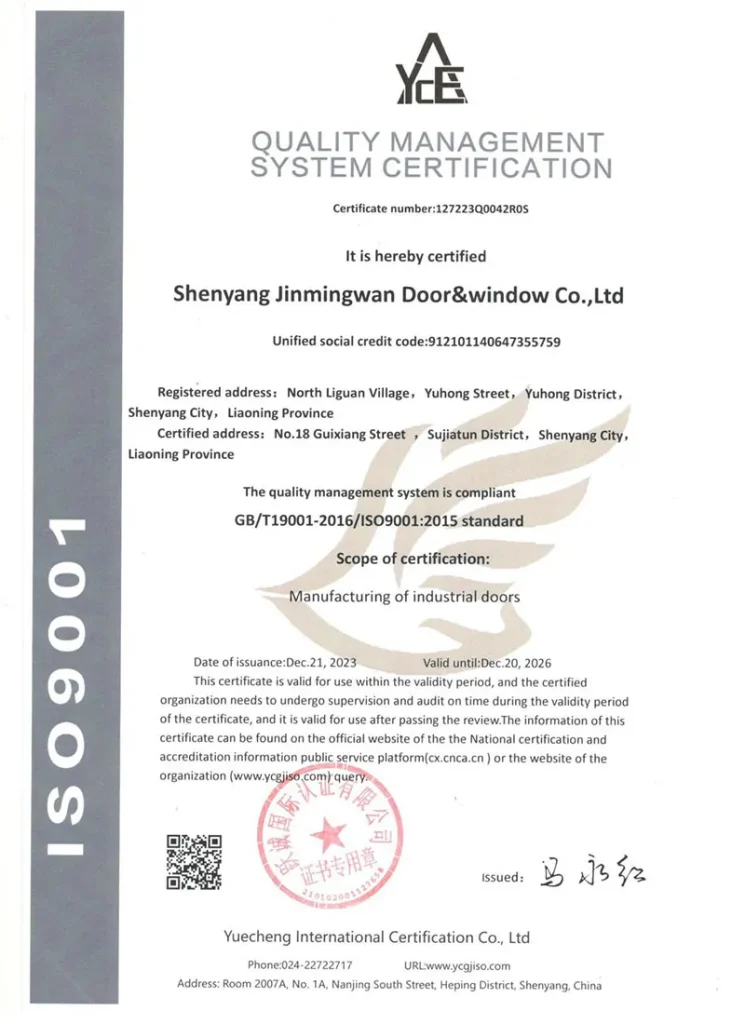 ООО Шэньян Цзиньминвань Двери и Окна обладает сильной технической командой и является комплексным предприятием, занимающимся продажей, проектированием и послепродажным обслуживанием автоматических ворот. Компания специализируется на производстве различных видов высококачественных дверей: высококачественные гаражные ворота для вилл, промышленные подъемные ворота, промышленные сдвижные ворота, промышленные распашные ворота, промышленные складные ворота, быстродействующие ворота из ПВХ, быстродействующие ворота с жестким турбоприводом, противопожарные рольставни, большие гибкие ворота, ворота для ангаров, ворота с накопителем, дверные уплотнители и погрузочные платформы, системы для парковок, телескопические ворота, подвесные ворота и т. д. Продукция отличается превосходным качеством и удовлетворяет разнообразные потребности. Продукция отличается превосходными эксплуатационными характеристиками, прочностью, долговечностью, привлекательным внешним видом, полным набором функций, безопасностью и надежностью.